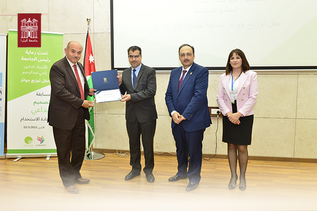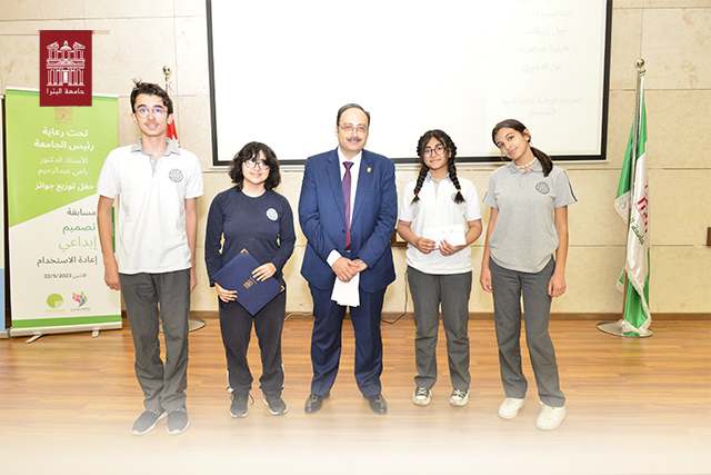 Prof. Rami Abdel-Rahem, President of the University of Petra, sponsored the awards ceremony for "Dawwer Initiative for 2023" contest launched by the Department of Architecture at the University of Petra and titled "Designing a Creative Product Through Reuse of Materials".