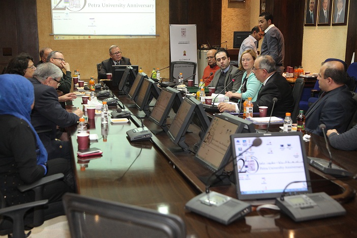 Prof. Marwan Muwalla, president of the University of Petra and the Deans of the Faculties met with delegations from Binghamton University in the United States, including a selection of professors where they discussed the signing of a Memorandum of Understanding and a cooperation between the University of Petra and Binghamton University. They also discussed cooperation in the field exchange experience and science between the two institutions and the transfer agreement to highest levels of fruitful work.